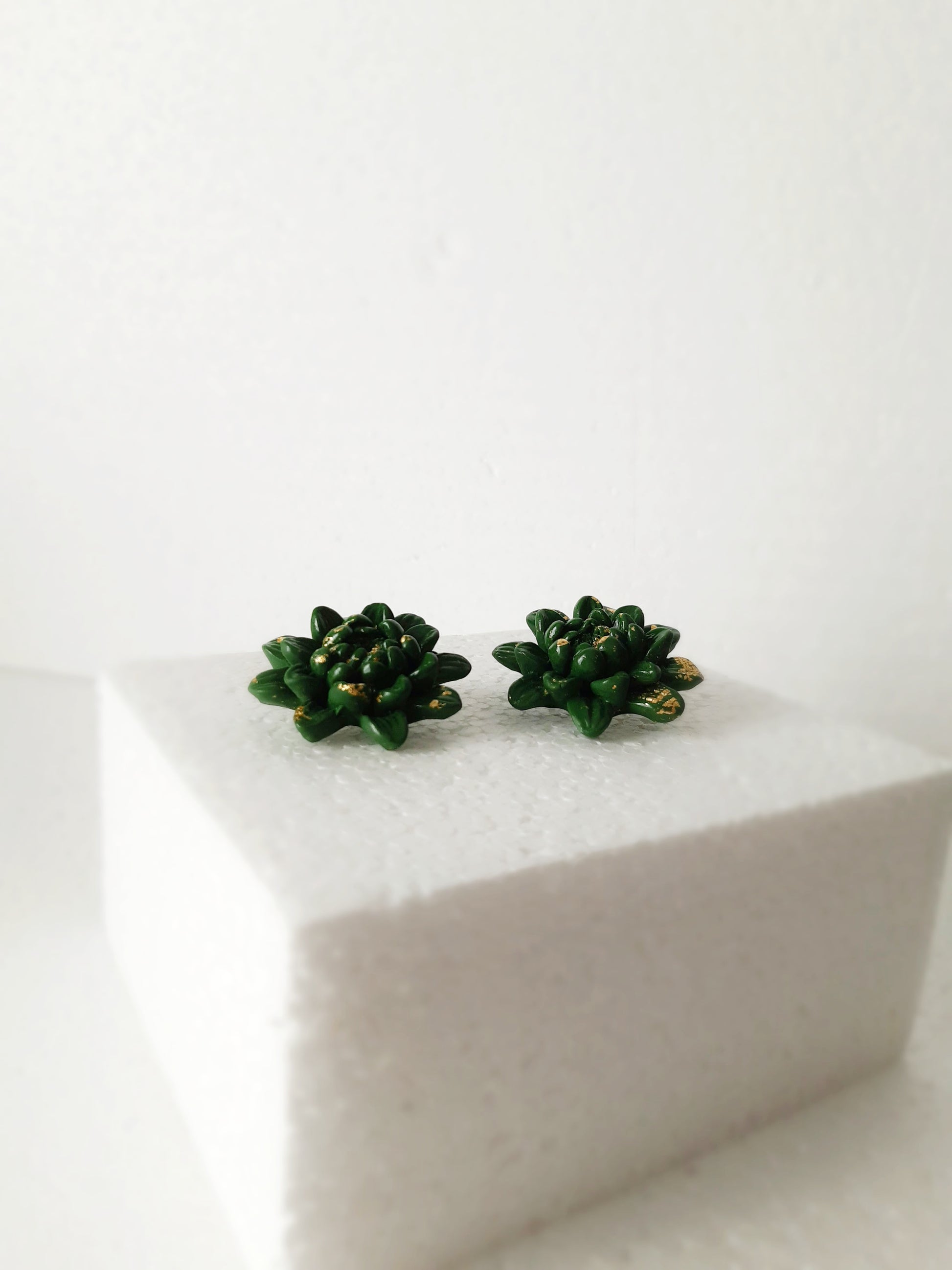 Large flower stud earrings, in molded and varnished khaki polymer clay. They attach with a silver stainless steel nail. They have a crazy trendy 80's side!