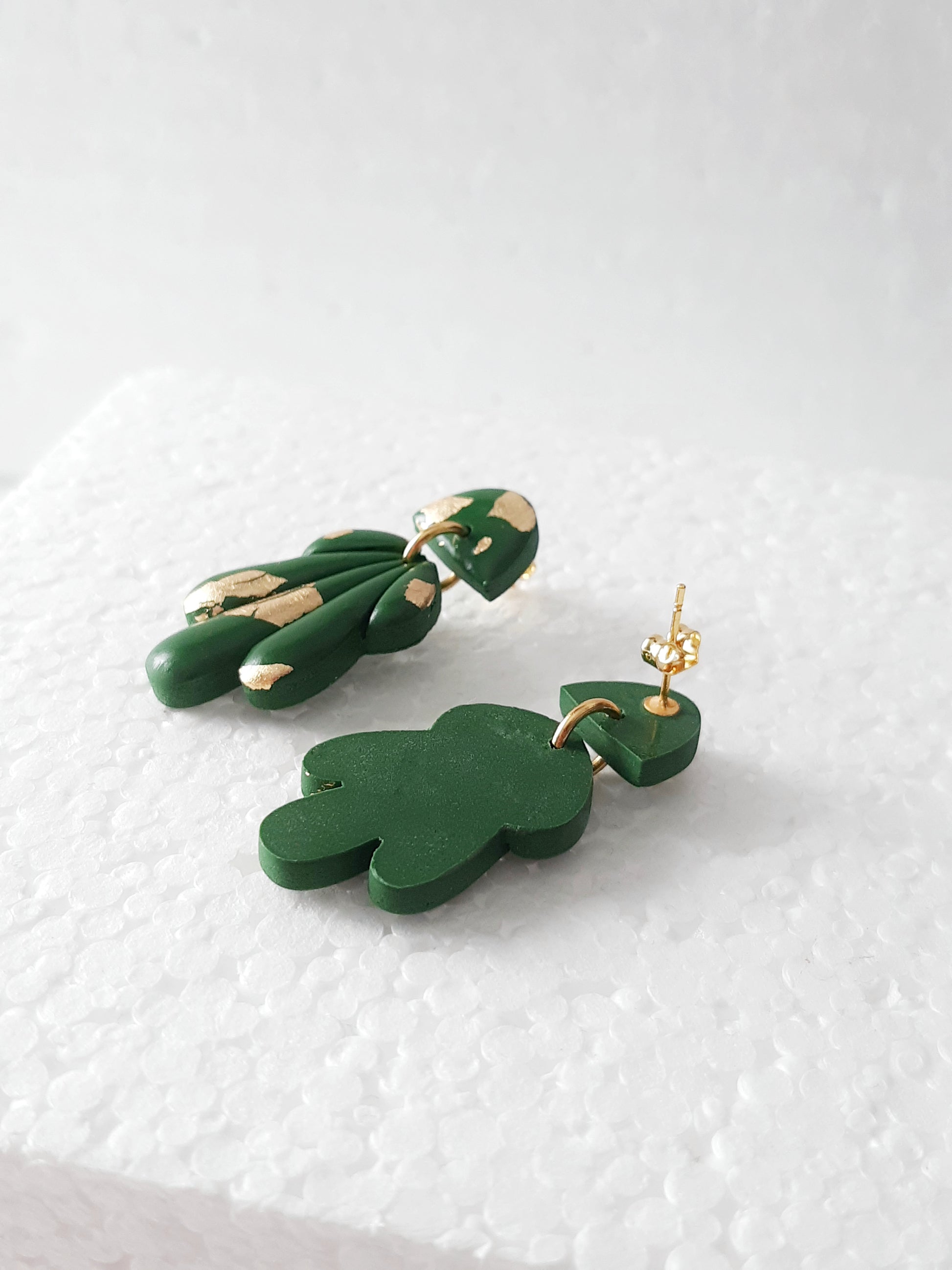 Earrings made of molded and varnished polymer clay tassels. Fine pieces of gold leaf are delicately placed on the curls. They attach with a gold stainless steel nail.