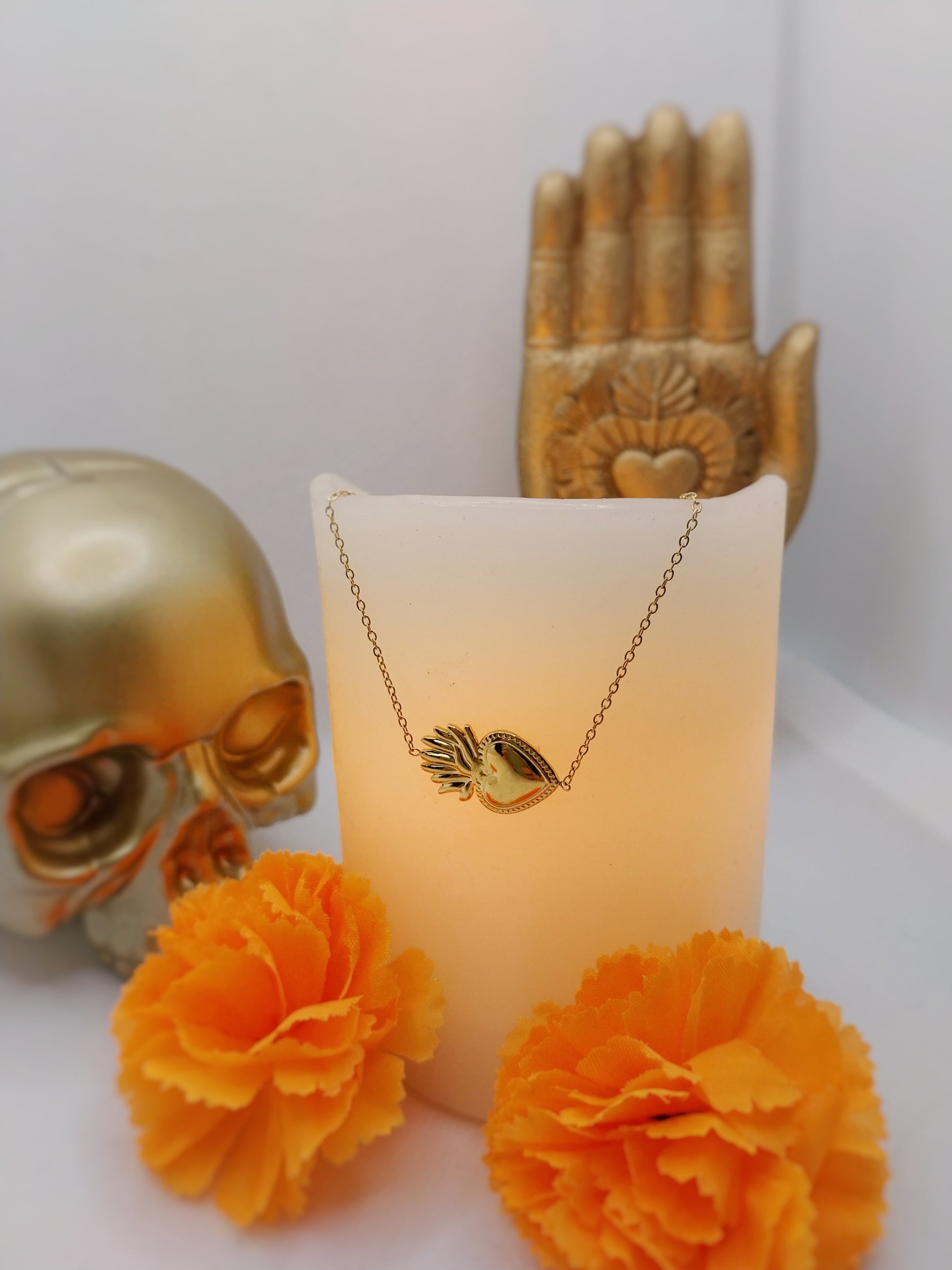Un bracelet raffiné, avec une fine chaîne dorée et un pendentif ex-voto délicat. Léger, discret mais chargé de sens, il se porte comme une amulette, toujours au poignet.