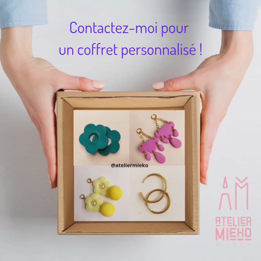 Des petits bijoux légers qui apporteront une touche colorée et pétillante à vos tenues ! Mes créations sont entièrement réalisées à la main, moulées, cuites, assemblées, poncées et vernies avec soin et amour, dans mon petit atelier de Lyon. Plus d’informations sur mon compte Instagram @ateliermieko !