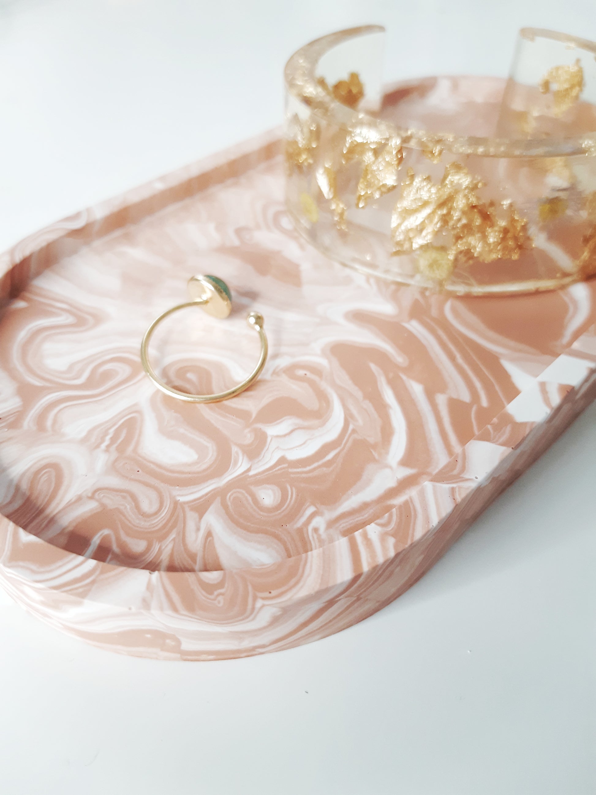 Recommendations for use: jesmonite is a porous material, so, despite the varnish that covers this tray, I advise you not to put it in contact with liquids. To clean it, a wipe with a soft cloth will suffice.