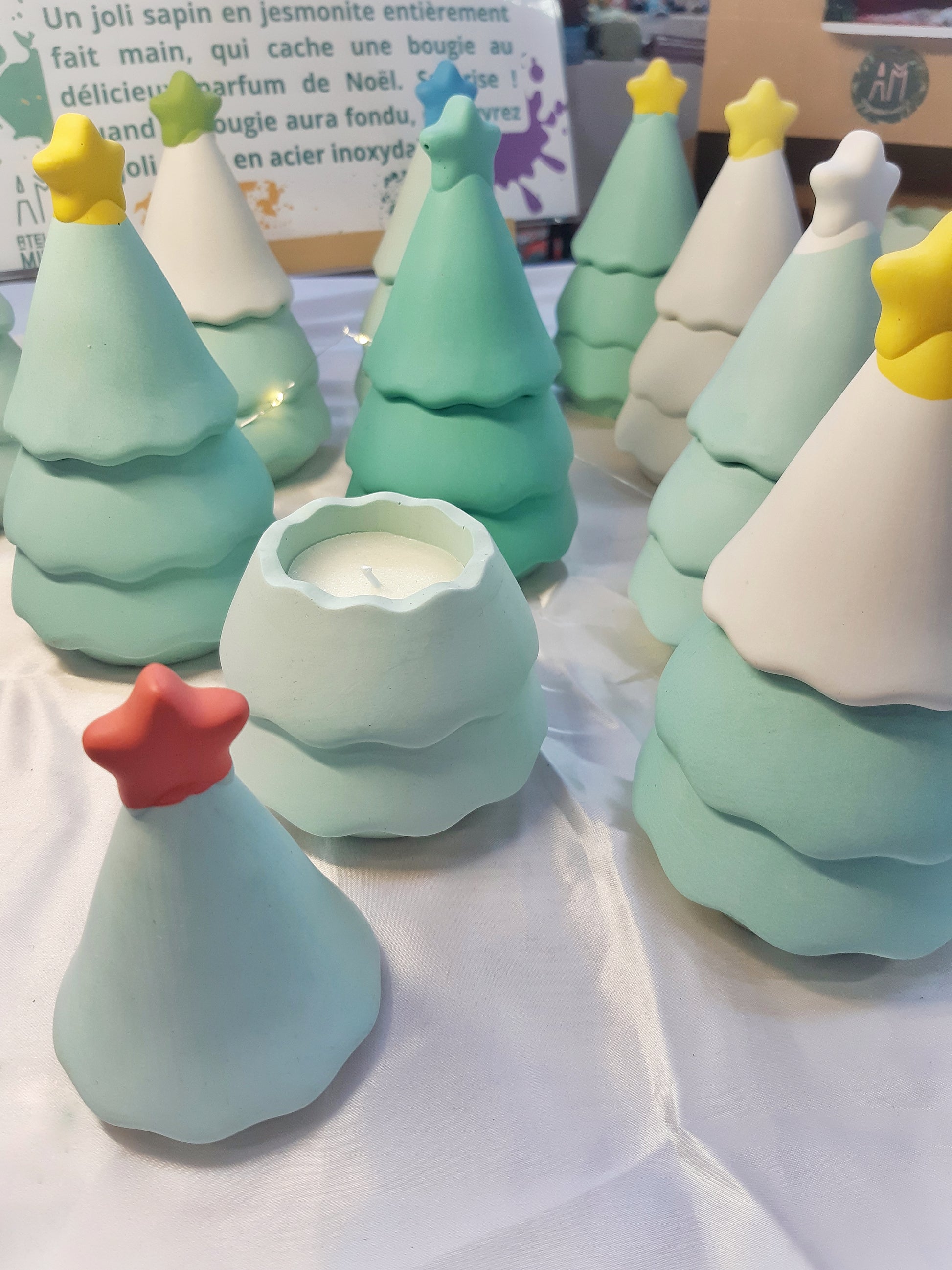 Small jesmonite tree containing an orange-cinnamon scented candle (a delicious Christmas smell!). Surprise ! When the wax melts, discover a small box containing a delicate golden stainless steel jewel!